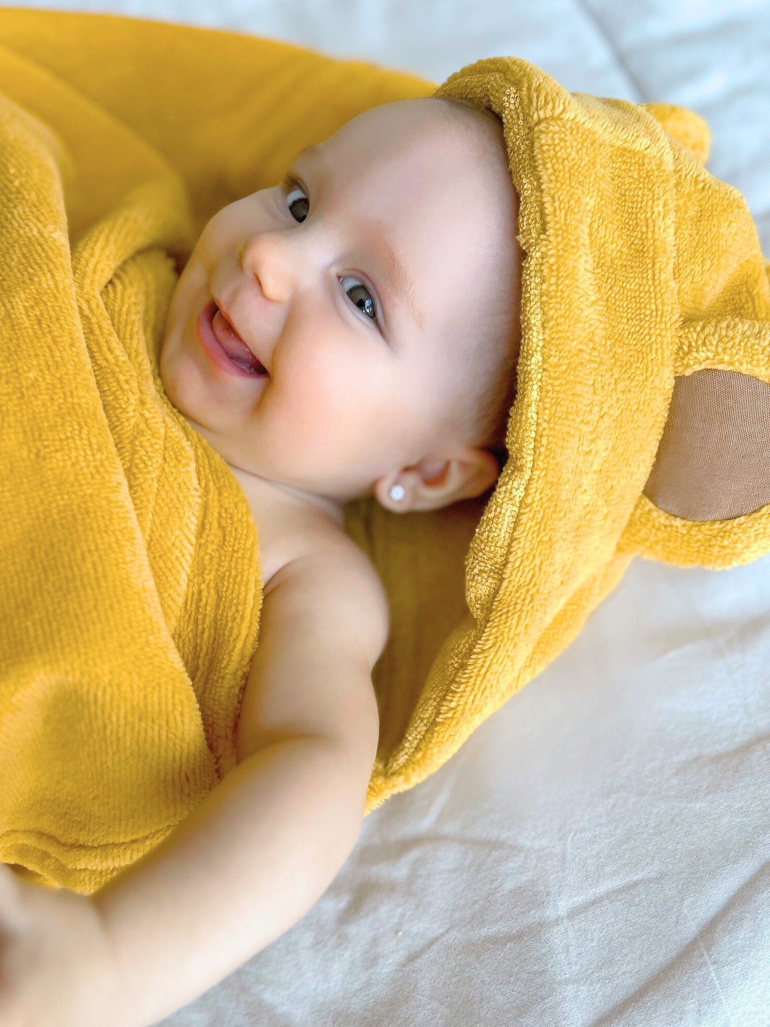 Náš veselý froté ručník s kapucí TOOWY se stane Vaším nenahraditelným pomocníkem při koupání miminka i starších dětí. Inovativní tvar ručníku Vám umožní krásně zabalit i to nejmenší miminko a veselá kapuce schová hlavičku a ochrání ji tak před nepříjemným chladem.